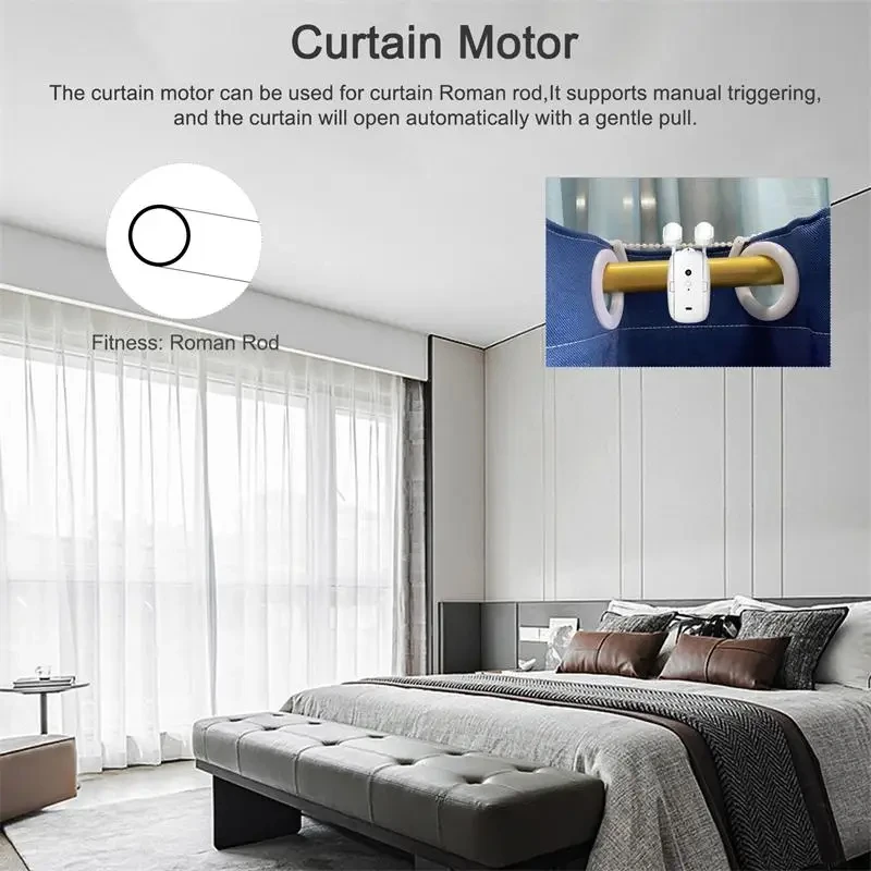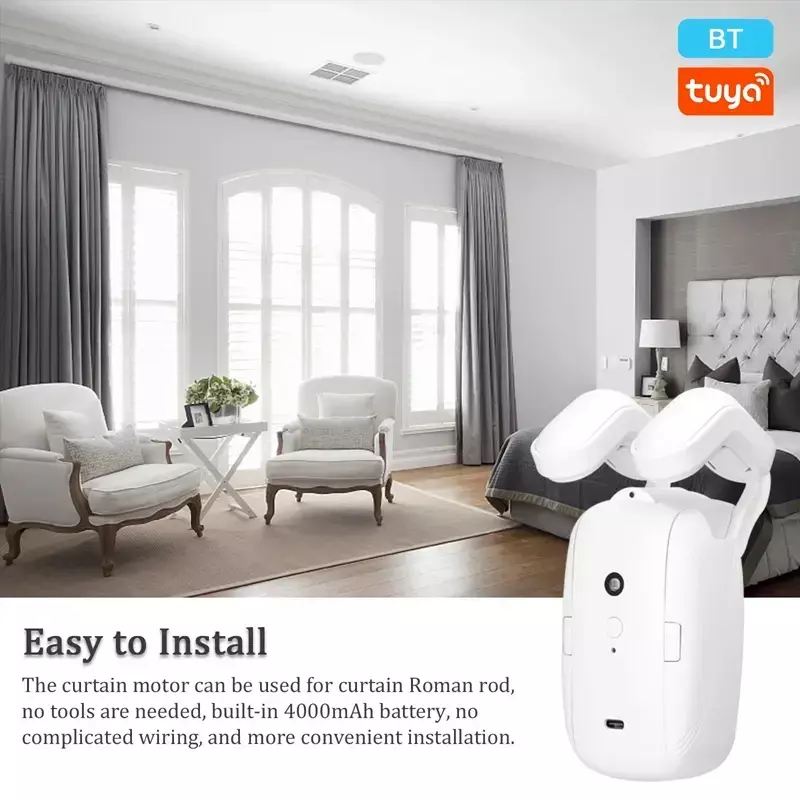 Controle remoto APP:Conexão Wifi com Tuya APP, controle remoto do interruptor de cortina, sem necessidade de puxar manualmente, muito adequado para os idosos com pernas inconvenientes, tornando a vida mais inteligente.