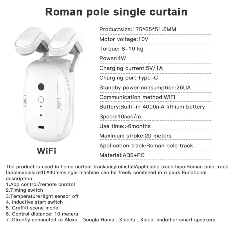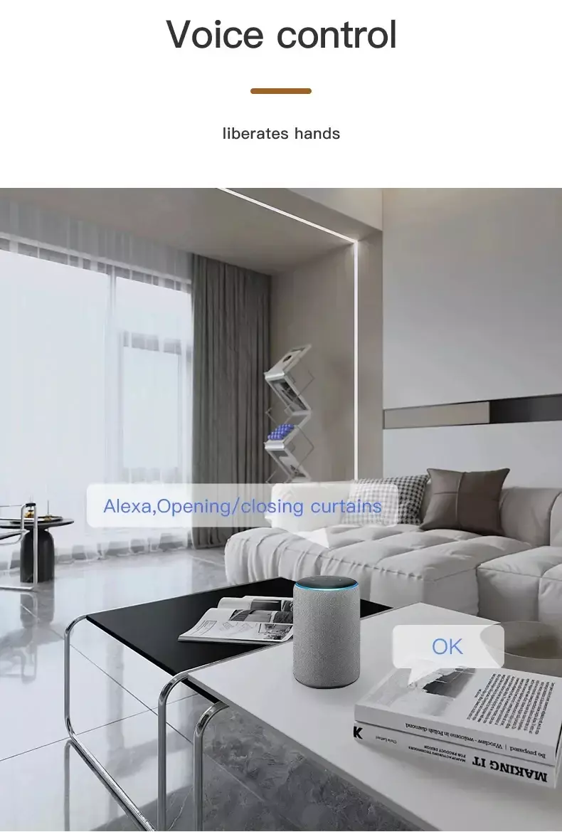 1. A versão WIFI do pacote robô de cortina foi equipada com um hub, as versões WiFi suportam o controle de voz doméstico Alexa Google.